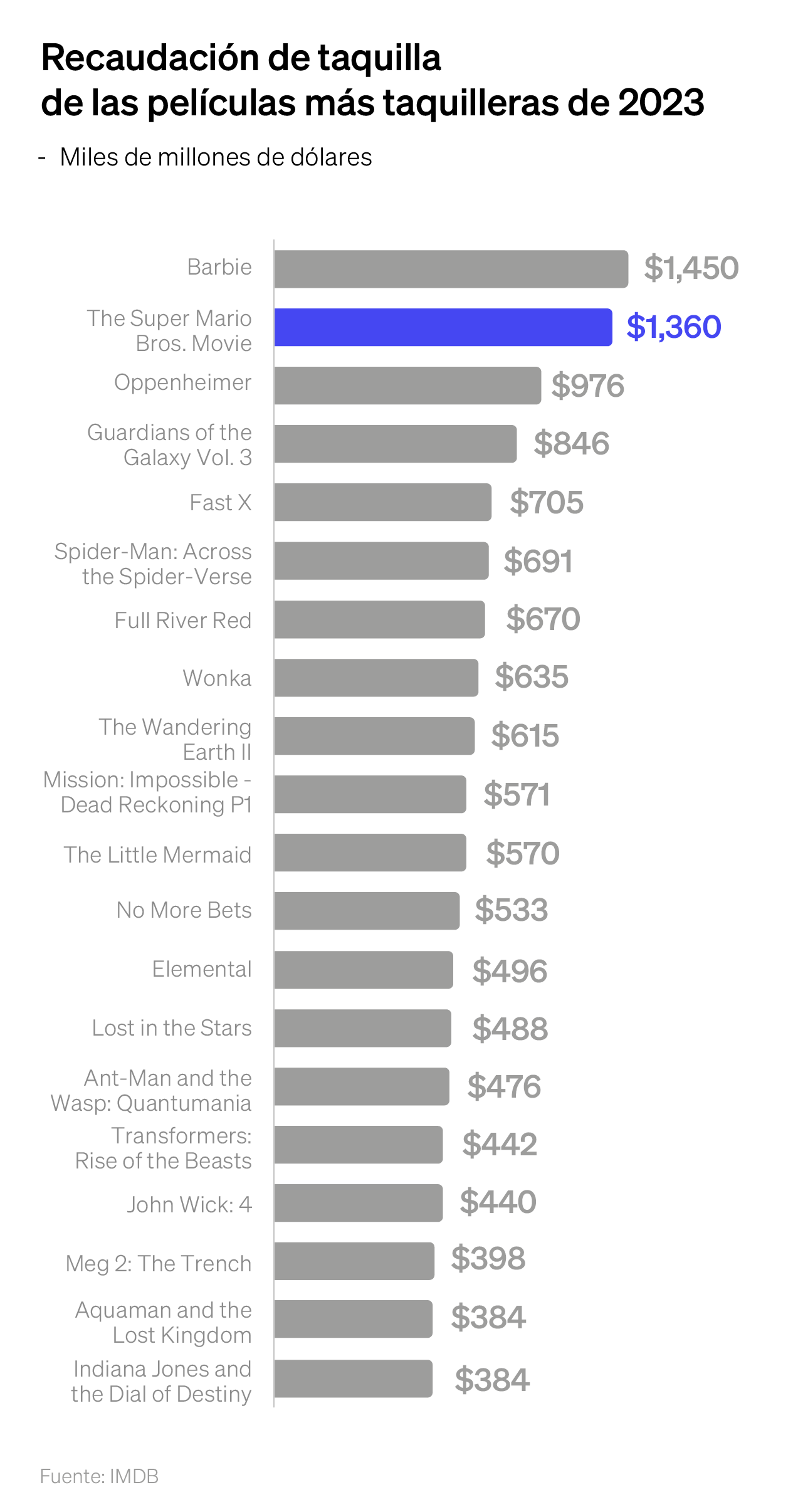 La nueva película, The Super Mario Bros. Movie, fue animada y producida en colaboración con el estudio Illumination, creadores de la exitosa saga de Mi Villano Favorito. Esta vez, la historia respetó la esencia de los juegos y fue un éxito enorme. Con animación moderna, guiños para los fans y una historia apta para todo público, la película recaudó más de $1,360 millones de dólares en taquilla mundial, colocándose como la segunda película más taquillera de 2023, solo por detrás de Barbie, pero superando por amplio margen la de Oppenheimer.
